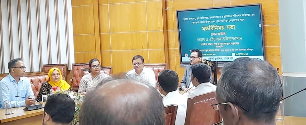 ফরিদপুর স্থানীয় প্রশাসন, শ্রম অধিদপ্তর, কলকারখানা ও প্রতিষ্ঠান পরিদর্শন অধিদপ্তরের কর্মকর্তা কর্মচারী এবং ট্রেড ইউনিয়নের নেতৃবৃন্দের সঙ্গে মতবিনিময় করেছেন শ্রম ও কর্মসংস্থান মন্ত্রণালয়ের সচিব