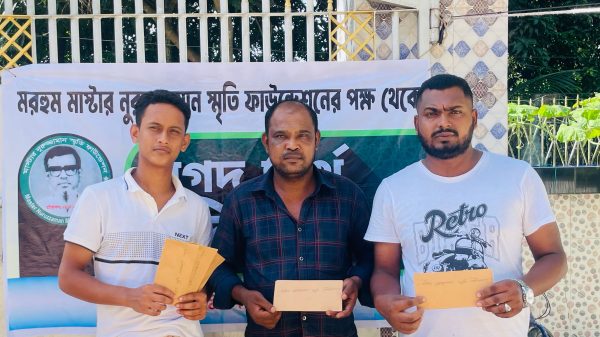 মরহুম মাস্টার নুরুজ্জামান স্মৃতি ফাউন্ডেশন এর উদ্যোগে নগদ অর্থ বিতরণ।